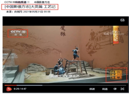 2021年5月31日,大英县独具特色的民间泥塑艺术徐氏泥彩塑在央视CCTV-10科教频道宣传报道