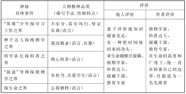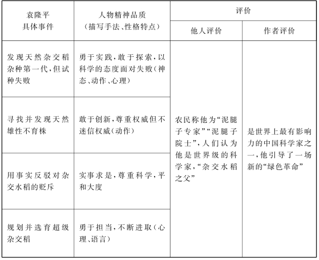 阅读3篇人物新闻通讯,以表格的形式梳理其中人物的具体事件、人物精神和评价。