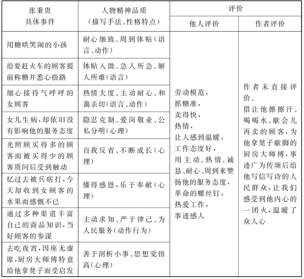 (1)抓住典型事件和细节描写(人物的语言描写、动作描写、心理描写和肖像描写)来凸显人物精神品质。