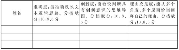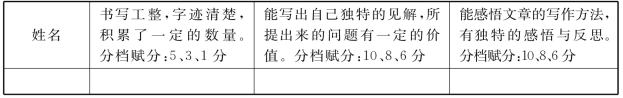 1.读书笔记的评价,对读书笔记的评价重在批注,要求言简意赅地表达摘录的理由,有独到的见解,形成自己的作文素材,见表6。
