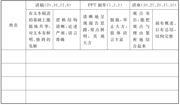 (2)微型讲座是整个学习任务群完成后的综合成果展示,是实践性学习活动,评价可关注(但不限于):