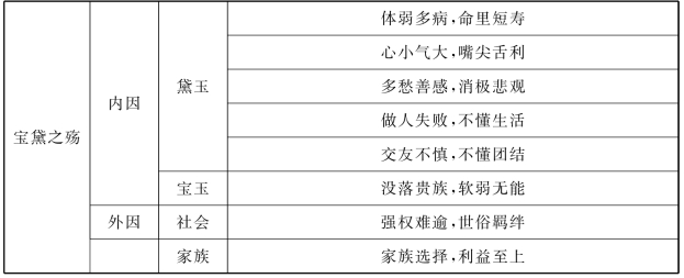 当黛玉病体支离,黯然焚稿,悲呼:“宝玉!宝玉!你好……”气绝身死,“香魂一缕随风散,愁绪三更入梦遥”,一部永恒的经典由此诞生。黛玉既死于她的病,也死于她的“心”,也死于其他的“人”。请按下表中的提示分析宝黛悲剧原因(表14)。