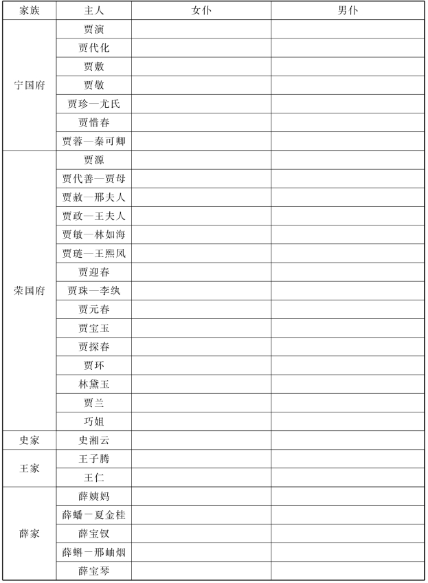(4)随着阅读进程,请把陆续出现的小妾、女仆、男仆填到相应位置。