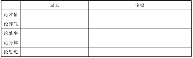 2)比较黛钗在各方面条件的差异,完成下表,思考宝黛之间互生情愫,产生爱情的决定因素是什么?结合相关情节来谈谈你的看法(表13)。