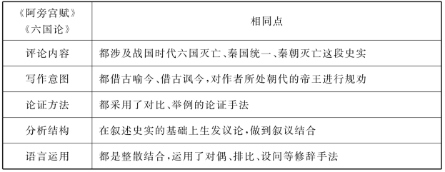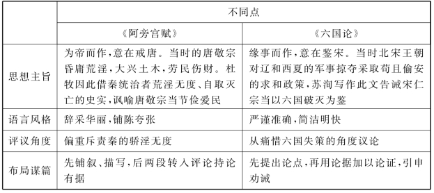 研读文本,比较《阿旁宫赋》与《六国论》的具体内容,完成下面的表格(表3~4)。