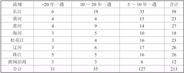 表1-1 1900—1999年我国主要江河洪水发生频率统计表