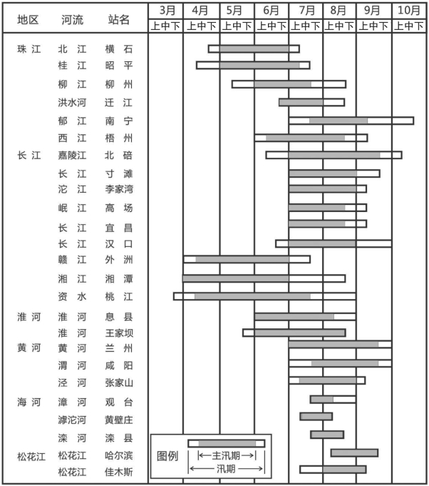 图3-1 我国主要河流汛期情况