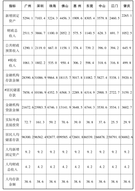 数据来源:2020年广东省统计年鉴、相关各地市统计年鉴。