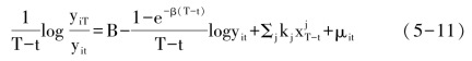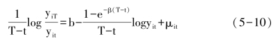 和绝对β收敛不一样的是,条件β收敛不需要严格的假定条件,也即不需要假设各国家或地区之间的基本经济特征完全相同。更进一步,它认为不同国家或地区的经济增长率本身就会受到来自内外部各种因素的干扰,所以各国家或地区经济增长的收敛性仅仅是针对其自身的情况而言。因为从人类经济社会发展实际情况来看,即使经过很长时期的发展,各国家或地区之间的人均产出差距也没有消失或缩小,甚至有扩大之势。这就意味着,即使从长期来看,也会出现“贫者恒贫,富者恒富”的现象,也即贫穷的国家或地区依旧贫穷,富裕的国家或地区依旧富裕。通常采用如下公式对条件β收敛进行检验: