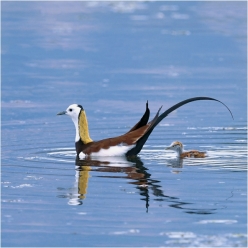 生活习性:主要栖息在热带及亚热带的开放性湿地中,主要为淡水湖沼。因其有细长的脚爪,能轻步行走于睡莲、荷花、菱角、芡实等浮叶植物上,且体态优美,羽色艳丽,被美称为“凌波仙子”。