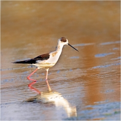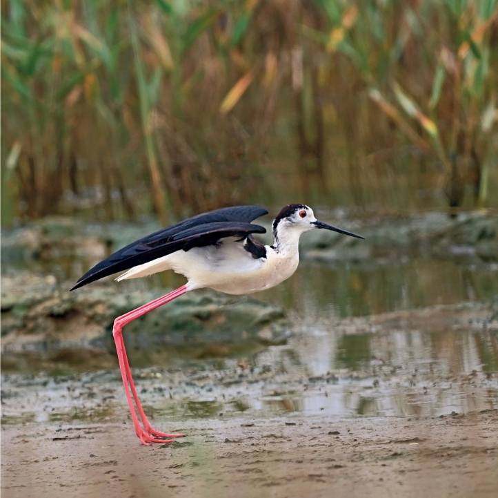 外形特征:中型鹬,体长29~41cm。两翼黑,长长的腿红色,体羽白。颈背具黑色斑块。幼鸟褐色较浓,头顶及颈背沾灰。虹膜红色;嘴细而尖,黑色;跗跖红色。