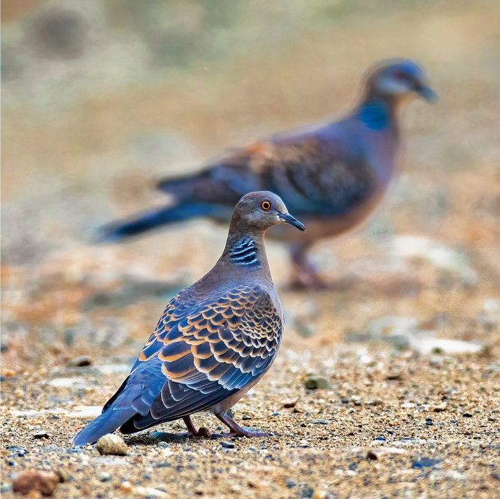 外形特征:中型鸠鸽,体长30~33cm。嘴爪平直或稍弯曲,嘴基部柔软,被以蜡膜,嘴端膨大而具角质;颈和脚均较短,胫全被羽。上体的深色扇贝斑纹体羽羽缘棕色,腰灰,尾羽近黑,尾梢浅灰。下体多偏粉色。虹膜红褐色或橙红色;嘴粉灰色;跗跖粉红色。