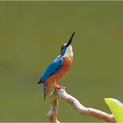 外形特征:小型翠鸟,体长15~18cm。外形和斑头大翠鸟相似。但体型较小,体色较淡,耳覆羽棕色,翅和尾较蓝,下体较红褐,耳后有一白斑。雌鸟上体羽色较雄鸟稍淡,多蓝色,少绿色。头顶呈灰蓝色,胸、腹棕红色,但较雄鸟为淡,且胸无灰色。虹膜土褐色;嘴黑色;跗跖朱红色;爪黑色。