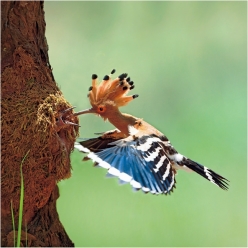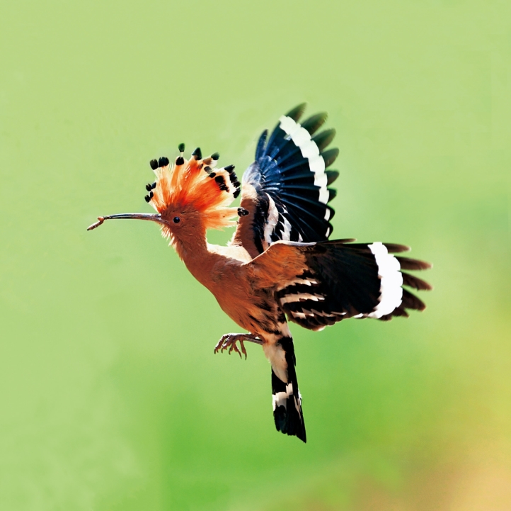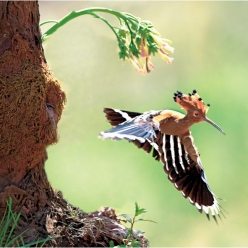外形特征:体长25~32cm。头顶羽冠长而阔,呈扇形,颜色为棕红色或沙粉红色,具黑色端斑和白色次端斑。头侧和后颈淡棕色,上背和肩灰棕色。下背黑色而杂有淡棕白色宽阔横斑。初级飞羽黑色,飞羽中部具一道宽阔的白色横斑,其余飞羽具多道白色横斑。翅上覆羽黑色,也具较宽的白色或棕白色横斑。腰白色,尾羽黑色而中部具一白色横斑。颏、喉和上胸为葡萄棕色。腹白色而杂有褐色纵纹。虹膜暗褐色;嘴细长而向下弯曲,黑色,嘴基部淡肉色;跗跖铅色或褐色。
