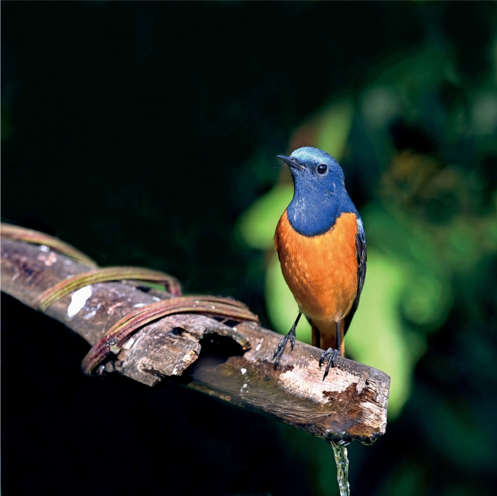 外形特征:小型科鸟类,体长14~16cm。雄鸟头、颈背蓝色,雄雌两性的尾部均具特殊的“T”形黑色图纹(雌鸟褐色)。虹膜褐色;嘴黑色;跗跖黑色。