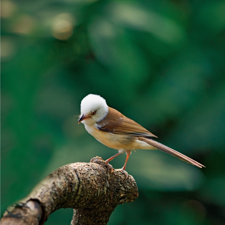 外形特征:尾长的较大型鹛类,体长21~24cm。头全白,尾长而凸,尾端有狭窄白色。下体偏白,腹部沾皮黄。虹膜黄色;嘴铅色,下嘴较淡;跗跖偏粉色。