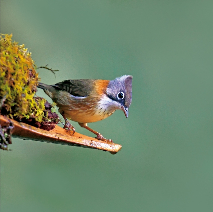 外形特征:较小型鹛类,体长12~12.5cm。眼圈白,领环皮黄褐色。黑色的髭纹将灰色的头后与白色的喉隔开。上体全褐,胸侧及两胁淡黄褐,脸侧具特征性的白色纵纹。虹膜褐色;上嘴深褐色,下嘴浅褐色;跗跖黄褐。