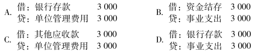 14.某事业单位于2020年5月1日购入一批办公用品3000元,因该批货物有质量问题发生退货,2020年8月1日收到退回的3000元货款,应做如下的会计处理( )。