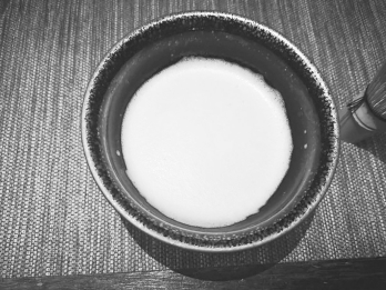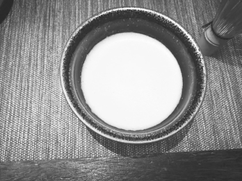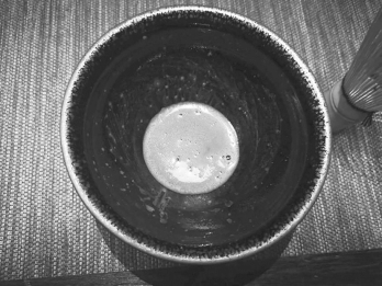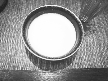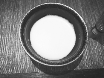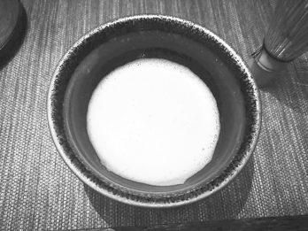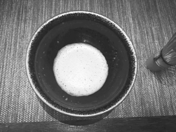 一汤手轻筅重、上下透彻。注水只要一点点,把膏状物体扫到碗边。
