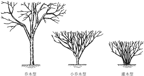 茶树品种按树型可分为乔木型茶树、小乔木型茶树和灌木型茶树,如图3-1所示。