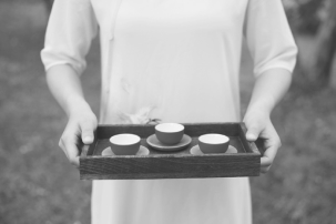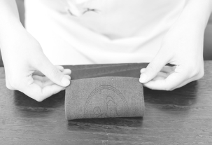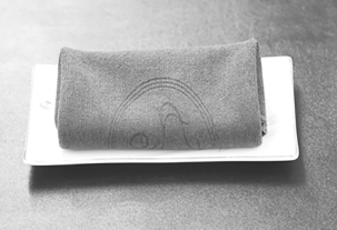 茶巾是用以擦拭茶具的棉织物,可用来擦拭泡茶、分茶时不小心溅出的水滴;或用来吸干壶底、杯底之残水;或在注水、续水时托垫壶流底部;还可用来擦拭清洁桌面,如图6-30所示。每张茶台最好配置两块茶巾,一块用来清洁茶具,另一块用来清洁茶台。