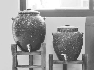 利用天然水源或无净水设备时,用贮水缸贮放泡茶用水,起澄清和挥发氯气作用,应注意保持清洁。如图6-50 所示。
