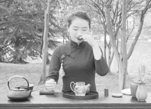 步骤12:品饮。黑茶口感滑厚、细柔,上好的熟茶还含有陈香、参香、枣香等香气,口感上柔滑醇厚。如图9-12所示。