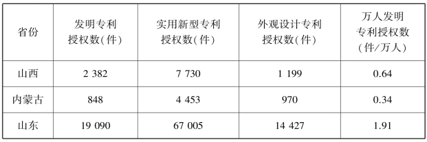 表7.7 黄河流域创新产业(授权专利)与苏、浙、粤三省比较(2018)