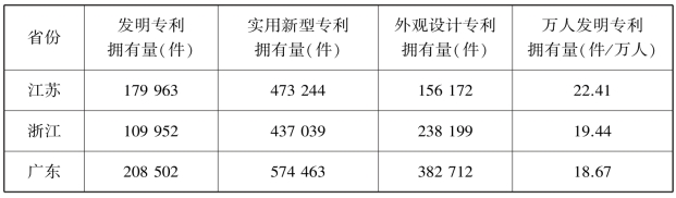 表7.8 黄河流域创新产业(拥有专利)与苏、浙、粤三省比较(2018)