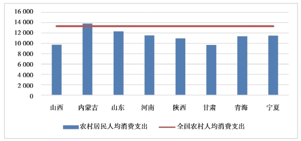 图9.7 2019年黄河流域8省(自治区)及全国农村居民人均消费支出