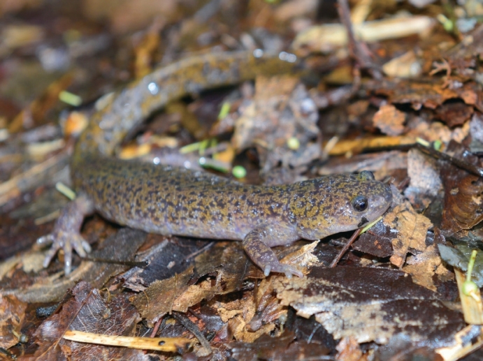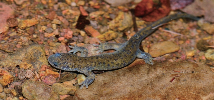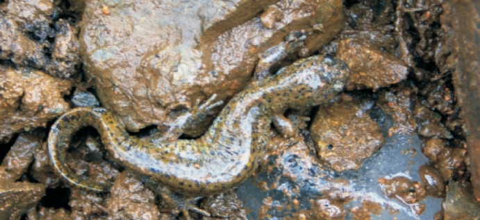 Description Adults up to 85-145mm in TOL, body cylindrical, SVL longer than TL; head flattened, HL wider than HW; snout tip rounded; vomerine tooth in “︺” shape; neck short; labial fold absent; jugular fold present; four fingers and five toes; skin is smooth, with 13 (11-14) costal grooves on the lateral.Dorsum grey-brown or gray-white, with densely dark grey or black dots, some individuals are unicolor.Males cloaca in “╉” shape;during the breeding season, the cloacal gland in the hypoderm is developed obviously and the surrounding area is obviously elevated; females cloacal in “T” shape.Male tail is taller than female.Dorsal tail fin of males is distinct, and dorsal tail fin of females is indistinct.