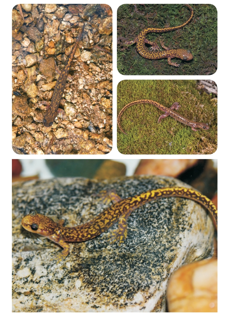 Description Adults up to 154-181mm in TOL of males, females up to 164-178mm; body slender and cylindrical.Head flat, HL wider than HW; snout tip rounded; obvious bended vomerine tooth in “M” shape, the left side doesn't contact with the right side.Labial fold absent.Tail is longer than body, changing from cylindrical shape to flattened shape.Four fingers and five toes, and all of them have black horny claws.Skin is smooth, with 14-15 costal grooves on the lateral.Lung absent.Dorsum is yellow-brown or light olive brown,with brown dots; belly is dirty white.