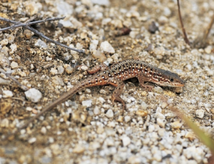 Behaviour Eremias argus argus live in desert and hilly areas of sand dunes, barren slopes, farmland, dams, beaches and other places.They usually successively fall asleep in October and wake up in March to April next year.The hibernating places are mostly leeward, face to the sun and drier places, such as tree pits, dams and ditches sides.The breeding season is May to July.During the season, the both sides of male's abdomen become orange red, and usually run in circles with the female.They mostly lay eggs once a year in northern China, with 3-8 eggs, and 2-3 times in southern China.The incubation duration lasts 1 to 2 months, and the hatched jureniles appear in July.
