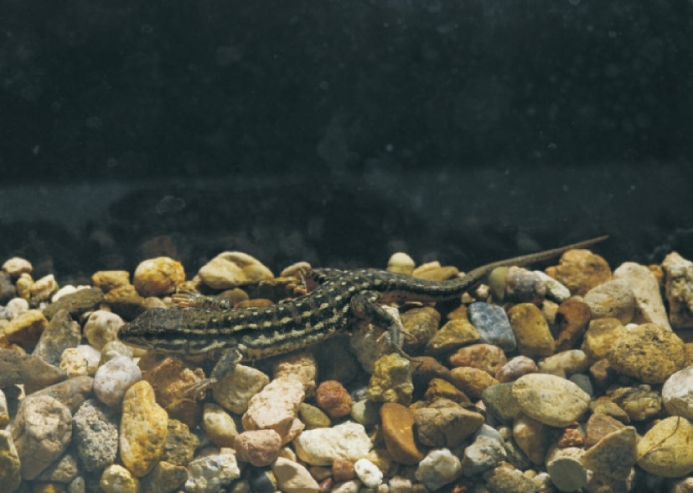 形态特征:全长100~130mm,尾长大于头体长,但不超过体长的1.5倍。体略呈长圆柱状,头稍宽扁,吻端钝圆;头顶有对称性大鳞,上唇麟9~11枚,下唇麟6~8枚;眶上鳞2枚,前眶上鳞较小,后眶上鳞较大;眶下鳞3枚,中间一枚眶下鳞不切入上唇麟之间;体背被覆小粒鳞,腹鳞矩形,一横排12~16枚,斜向中线排列。每侧有股孔9~12个。眶下鳞不向下延伸。生活时,背面棕黄色或灰褐色,体、尾背面及眼后至尾前段侧面具有纵行的黑缘白色眼状小斑,至尾侧后段呈黑色纵纹,四肢背面有白斑;腹面白色。