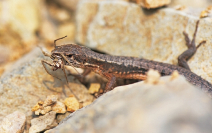 Behaviour Takydromus amurensis move around during the day, mainly feed on insects,spiders and other small animals without cervical vertebra.They generally perch on the edge of mountain forests, sunny hillsides, among the grass, in a pile of dead leaves by the roadside and the like.The breeding season is from the end of May to the middle of June;and they lay 4-12 eggs at a time.