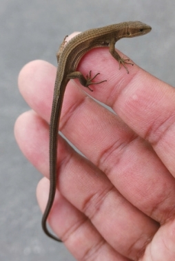 Description Adults up to 150-200mm in TOL; TAL is not more than 2.5 times of SVL;the body is long and thin; sharp and thin head; symmetrically big scales on the top head;big scales are ribbed on the dorsum; generally 7-8 lines in the middle part; big and smooth scales in 8 lines on the ventral; four pairs of jaw pieces; one pair of inguinal pore; dorsum is olive brown, yellowish brown, greyish brown; thin and white stripes on the upper lip edges,the body dorsum and body sides.