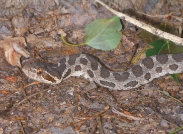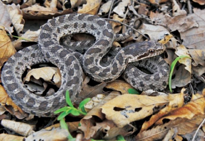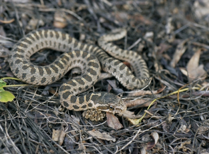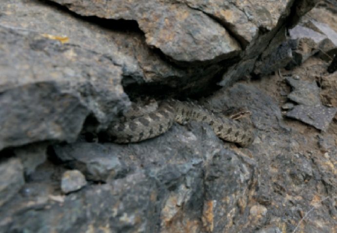 Description Adults up to 800-1,200mm TOL, medium-size body, non-toxic.Body is stubbed; head is slightly bigger and in triangle shape, distinct from the neck; eyes are big;pupils are round; adult's and sub-adult's body color is different from the juvenile's.Adult's color are brown, with three rows of dark brown round spots with fine black rim on the center of dorsum and both sides; one row of big round spots in the midline, yellow and white speckles for connection; small round spots on body sides; left and right opposite, with no striped link, each small round spot on both sides of the large round spots interval; juvenile's body color is grey brown; 2 rows of dark brown or brown stripes on the top head, with dark brown and tan brown stripes; blackish brown round spots on the dorsum.Sub-adult's color is grey, with dark brown spots; 8 supralabials are in arranged 3-2-3 rows; 11-13 infralabials.The outermost row of dorsal scales are smooth, stronger and ribbed, arranged in 25-23-19 rows; the male has 155-181 vernal scales; 53-72 pairs of subcaudals; 2 anal plates on the anus.