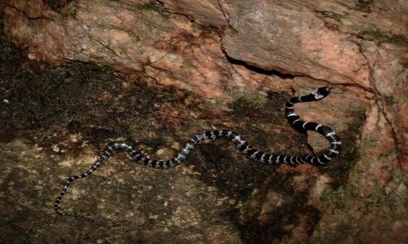注:2005年王宁和郑光美在北京小龙门首次发现并报道;2009年莫训强等在天津蓟县拍摄到本种照片(路杀个体);2016年又有徒步者在北京与河北交界处的野三坡拍摄到该蛇的照片。鉴于此,黑背白环蛇在华北地区的分布可初步确定。