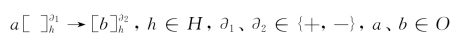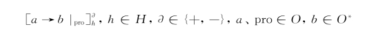 pro表示膜中的促进剂。在促进剂pro存在的情况下,如果对象a出现在膜标签为h的膜中,则该规则可以应用于当前格局中。通过应用此规则,对象a进化为多重集b。如果没有促进剂的作用,则该规则表示为,代替