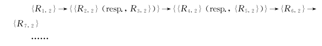 对于给定的含有n个变量和m个子句的布尔公式,设变量为xi,1≤i≤n。一般地,膜2中的对象ai对应于变量xi。包含n个变量的布尔公式具有2n种不同的变量赋值。第一步,系统开始运行,这时规则R 1,1和R10同时开始执行。规则R1,1是分裂规则,将一个原始膜分裂为两个具有相同膜标签的新膜。同时,对象a1进化为t1和f1后分别出现在新生成的膜中。其中,对象t1对应于变量x1的赋值为真,对象f1对应于变量x1的赋值为假。在该过程中,除了规则R1,1和R10之外,没有任何可以执行的规则,因此该过程仅需一个RS步。当规则R 1,1执行结束时,规则R2,1和R3,1同时开始执行。这些规则对应于检查所有子句中变量x1的赋值(真或假)是否是可满足的。因此,在每个膜2中将生成来自集合{r1,r2,…,rm}中的一些对象(或没有对象)。此外,还会生成对象a 1,1(resp.,a 1,2)。因为规则R 2,1和R 3,1可能在不同的RS步内执行结束,因此规则R 4,1和R 5,1的执行并不是同时开始的。当R 2,1(resp.,R 3,1)执行结束时,规则R 4,1(resp.,R 5,1)开始应用,通过执行该规则,对象a 1,1(resp.,a 1,2)将被送出膜2。