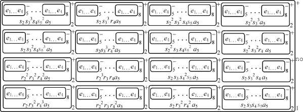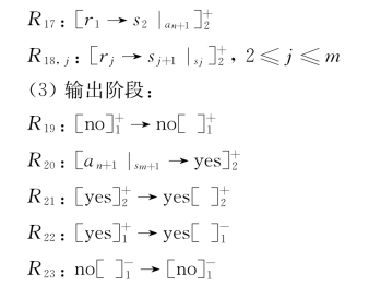 通过应用规则R 16,i,注意到膜标签为2的膜上的电荷从负变为正。因此,该过程只可能有一份对象a i进入一个膜2中。此外,规则R 16,i以极大并行的方式应用于膜标签为2的所有膜,因此在变量的每次循环计算过程中,这条规则的执行都只需要一个RS步。