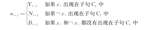 证明:对于具有n个布尔变量和m个子句的公式,本章考虑命题公式γ=C 1∧C 2∧…∧Cm,其中,C j=y j,1∨…∨y j,pj,y j,i∈≤k≤n},1≤j≤m,1≤i≤