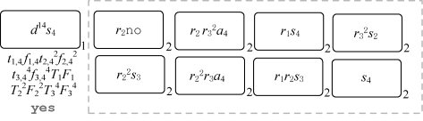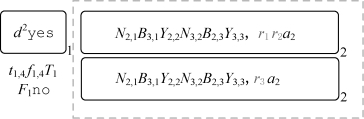 其中,对象ti,j表示变量xi的赋值为真(true),对象fi,j表示变量xi的赋值为假(false);对象rj表示变量赋值使得子句j是可满足的;物质yes表示公式是可满足的,而物质no表示公式是不满足的;E为环境中存在的任意多份对象: