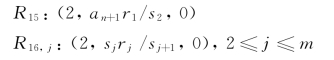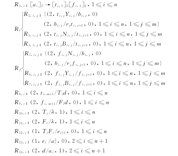 因为系统在时间无关模式下工作,显然e(R t)+e(R 8,1)+e(R 10,1)可能不等于e(R f)+e(R 9,1)+e(R 11,1)。规则R 12,1可以解决系统在运行过程中的同步问题,当该规则执行结束,说明前面所有的规则已经执行结束。