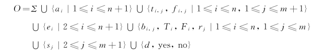 设e是规则的执行时间。对于给定的含有n个变量和m个子句的布尔公式,设变量为xi,1≤i≤n。一般地,细胞2中的对象ai对应于变量xi。系统在初始状态下,细胞1中含有物质yes、no;细胞2中含有对象a1和输入多重集cod(γ)。