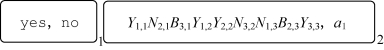 另外,Σ={Y i,j,N i,j,B i,j|1≤i≤n,1≤j≤m}为在O内的输入字母表;w 1={yes,no},w 2=a 1是各个细胞内初始物质;i in=2为输入细胞,i out=0是保存最后计算结果的输出区域;每条规则的执行时间通过时间映射e:R→N得到,其中R是包含以下规则的规则集。