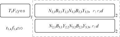 根据上述分析,规则R 8,1和R 9,1可能是从不同的RS步开始执行的。当生成对象t 1,m+1(resp.,f 1,m+1)时,应用规则R 8,1(resp.,R 9,1),环境中的对象多重集T 1d(resp.,F 1d)进入细胞2与对象t 1,m+1(resp.,f 1,m+1)进行交换。规则R 8,1(resp.,R 9,1)可以确保在具有标签2的每个细胞中只生成一个对象d。当在细胞2中生成对象T 1(resp.,F 1)时,规则R 10,1(resp.,R 11,1)开始执行,通过该规则可以将对象T 1(resp.,F 1)发送到细胞1。当规则R 10,1(resp.,R 11,1)执行结束,规则R 12,1开始启动执行。此时,在细胞1中存在多重集T 1 F 1,环境中的对象e 2进入细胞2与多重集T 1 F 1交换。随后,规则R 13,1开始执行,细胞1中的对象e 2发送出细胞进入环境,同时,两份对象a 2进入细胞1。最后,应用规则R 14,1,细胞2中的对象d和细胞1中的对象a 2进行交换。
