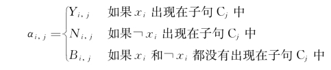 (2)检测阶段:系统检查公式是否存在一组变量的赋值,使得布尔公式的值为真。如果存在一组变量的赋值可以满足所有子句,则说明至少有一个可满足解,即该布尔公式是可满足的;否则,该布尔公式是不满足的。利用规则R15和R16,i检测出所有变量赋值满足的子句,并产生最终的检测结果;