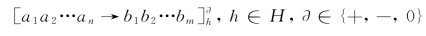 以上规则中,H是膜标签的有限集合,膜上电荷集合为{+,-,0}。