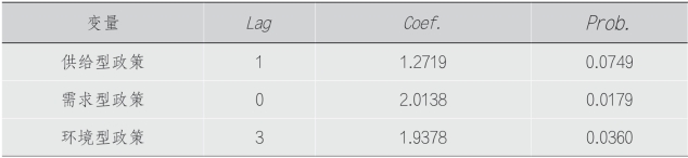对三类不同政策工具分级诊疗实施效果进行回归分析[通过公式(6-3)进行测算],结果如表6-6所示。根据赤池信息准则和施瓦兹准则,确定最优滞后分布长度,发现各政策工具的滞后期均在1—3年内。由表6-6可得,供给型、需求型、环境型这三类政策工具均可以有效促进分级诊疗制度的推进,系数分别为1.2719、2.0138和1.9378,且均具有10%水平的显著性,表明政策对引导国民向基层医疗机构就诊均具有正向作用。其中,需求型政策工具的滞后期最短(为0),政策效果(coef.=2.0138)最显著,说明推行需求型政策对推进分级诊疗制度起作用最快最有效。环境型政策工具的滞后期最长(为3),这可能与环境型政策本身的性质有关。环境型政策多是目标规划和发展战略类文件,需要建立完善的配套制度,规范法规,进行监管,需要充分调研和试点运行,因此在发生实质效果前需要很长的时间,因此滞后期也最长。供给型政策工具的政策效果最弱(为1.2719),虽然近几年国家出台了一系列公立医院改革、加强基层医疗机构服务能力建设、全科医师培养、远程医疗服务、大数据智能化医疗等改变医疗服务供给方式的政策,在政策文件量上达到了一定的数量,相应的硬件设施(如人员的配备、现代化仪器设备等)也在跟进,但难以影响和改变患者就医观念和行为,实质的内涵性建设(如基层医疗机构的实际服务水平、基层医疗人员的医术水平等)有待进一步提升。